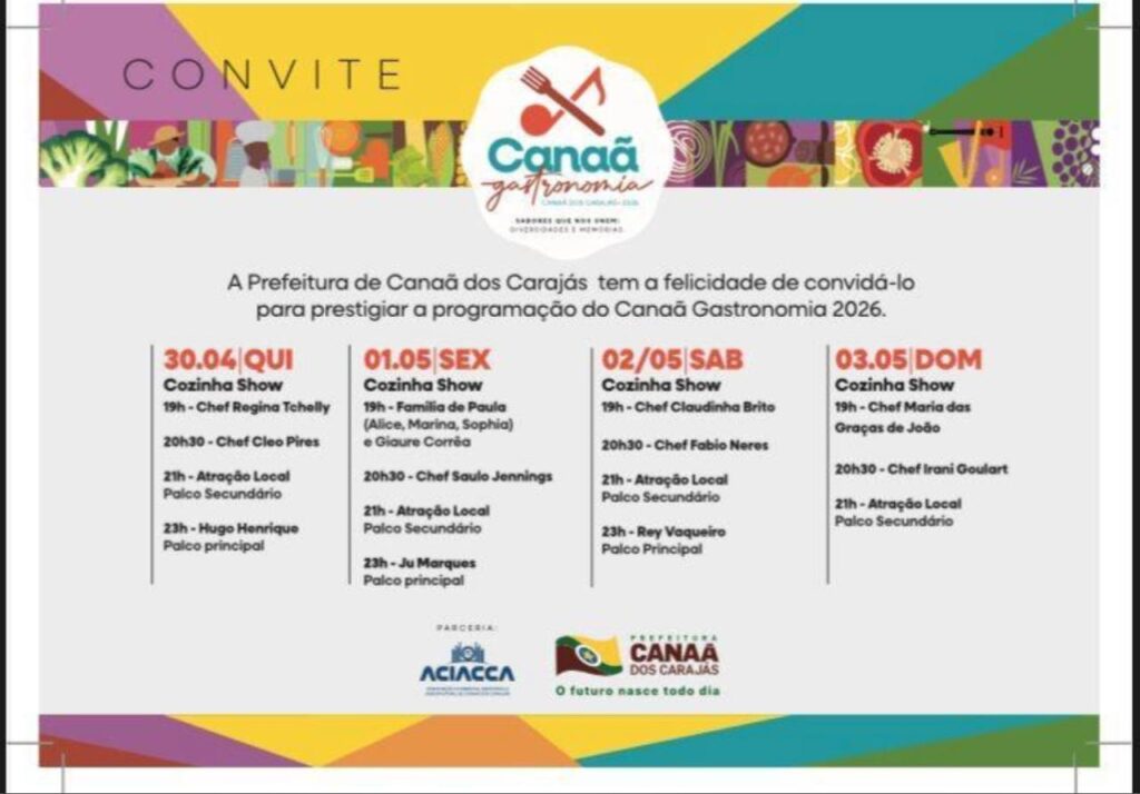 O evento será realizado de 30 de abril a 3 de maio, no Parque de Eventos Mayko Goulart Uma mistura de sabores, memórias, cultura e