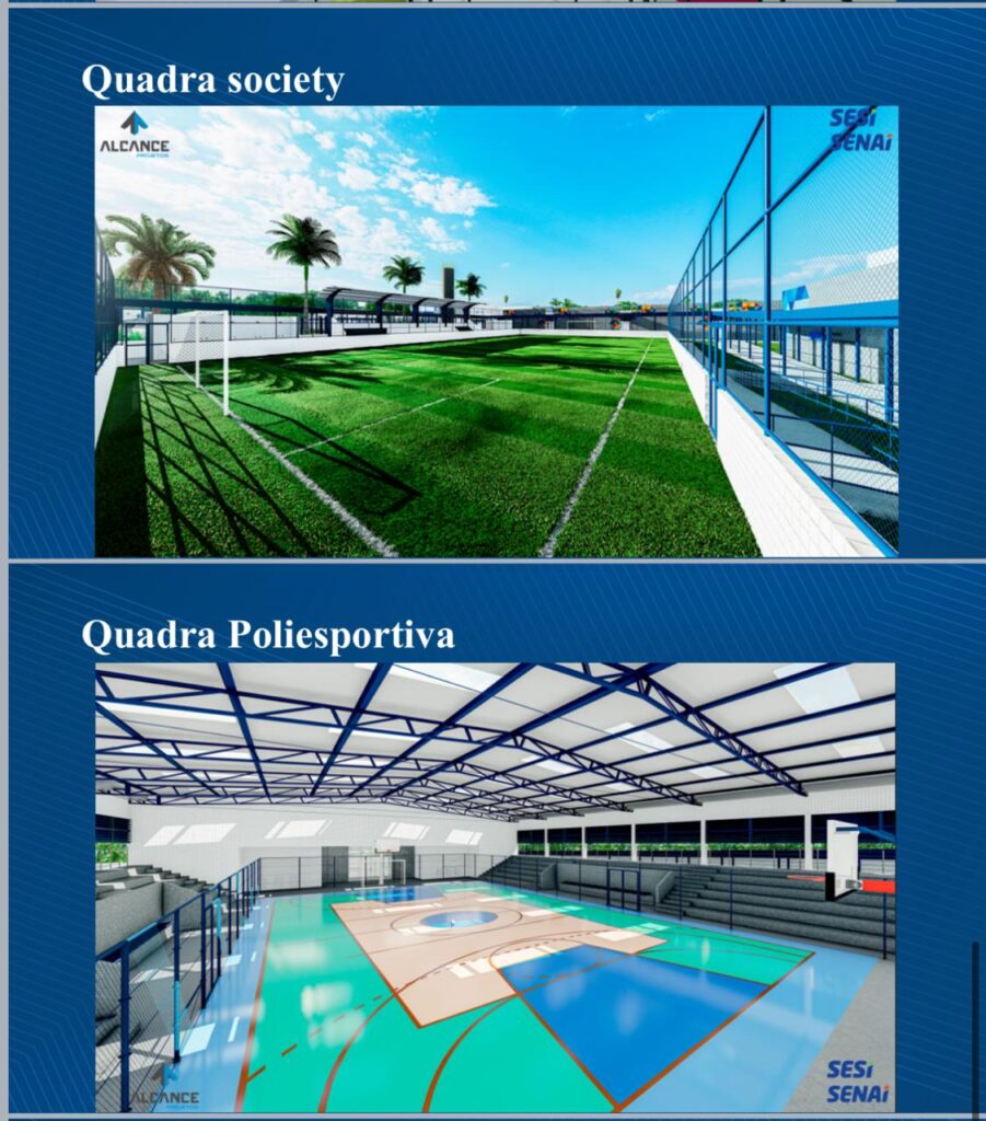 Já a parte do SESI contará com 36 ambientes pedagógicos, contemplando Educação Infantil, Ensino Fundamental, Novo Ensino Médio (integrado SESI e SENAI) e Educação de Jovens e Adultos (EJA). Entre os destaques do projeto estão um auditório para 300 pessoas, bloco de recreação, campo de futebol, quadra coberta, playground e espaços destinados ao estímulo à inovação.