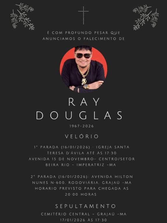 Na madrugada desta sexta-feira, 16 de fevereiro de 2026, o cantor e compositor Ray Douglas faleceu aos 68 anos no Hospital Municipal de Imperatriz (MA), conhecido como Socorrão. Sua morte foi confirmada após complicações graves causadas pelo diabetes, condição crônica que acompanhava o artista há anos.