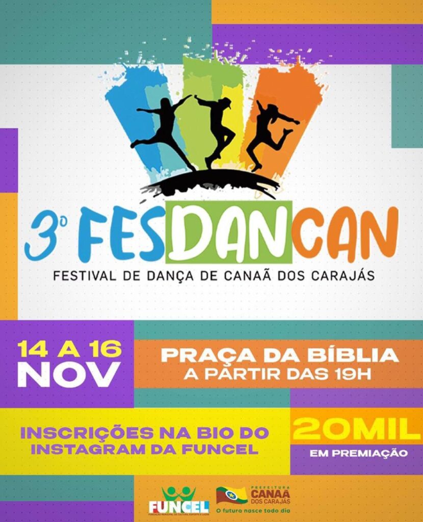 O FESDANCAN 2025 é uma realização da Prefeitura de Canaã dos Carajás, por meio da Fundação de Cultura, Esporte e Lazer (FUNCEL) e ocorre entre os dias 14 e 16 de novembro, sempre a partir das 19h, na Praça da Bíblia, localizada no bairro Novo Horizonte.